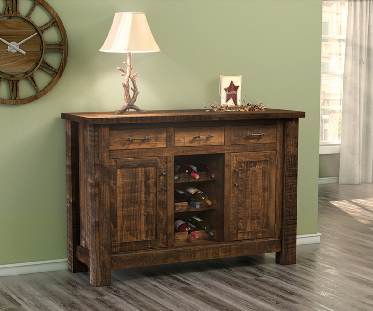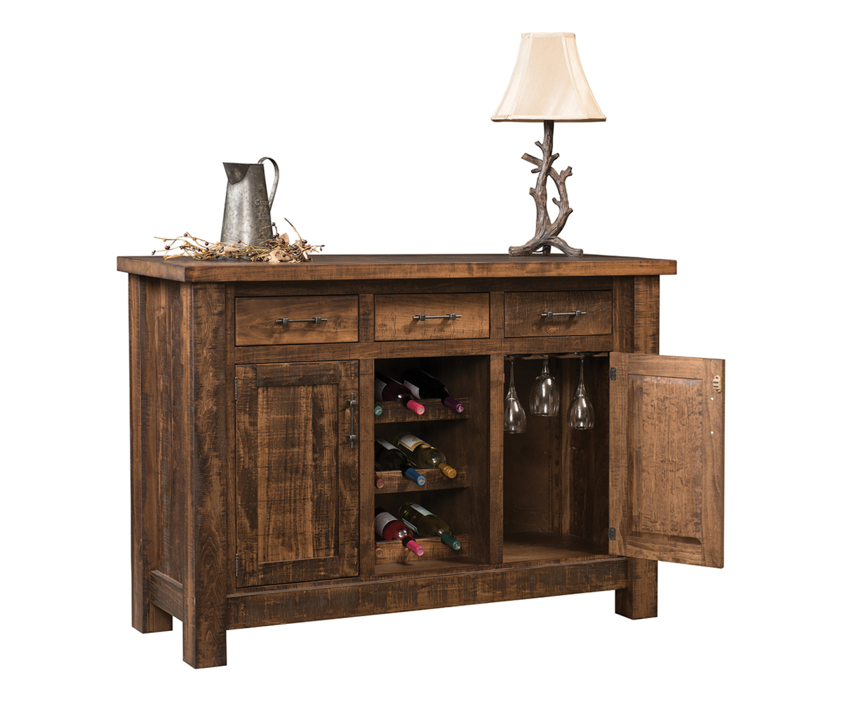 Features: • Dovetailed drawers • Full extension drawer slides • One adjustable shelf behind each door • Wine bottle rack holds up to 9 bottles