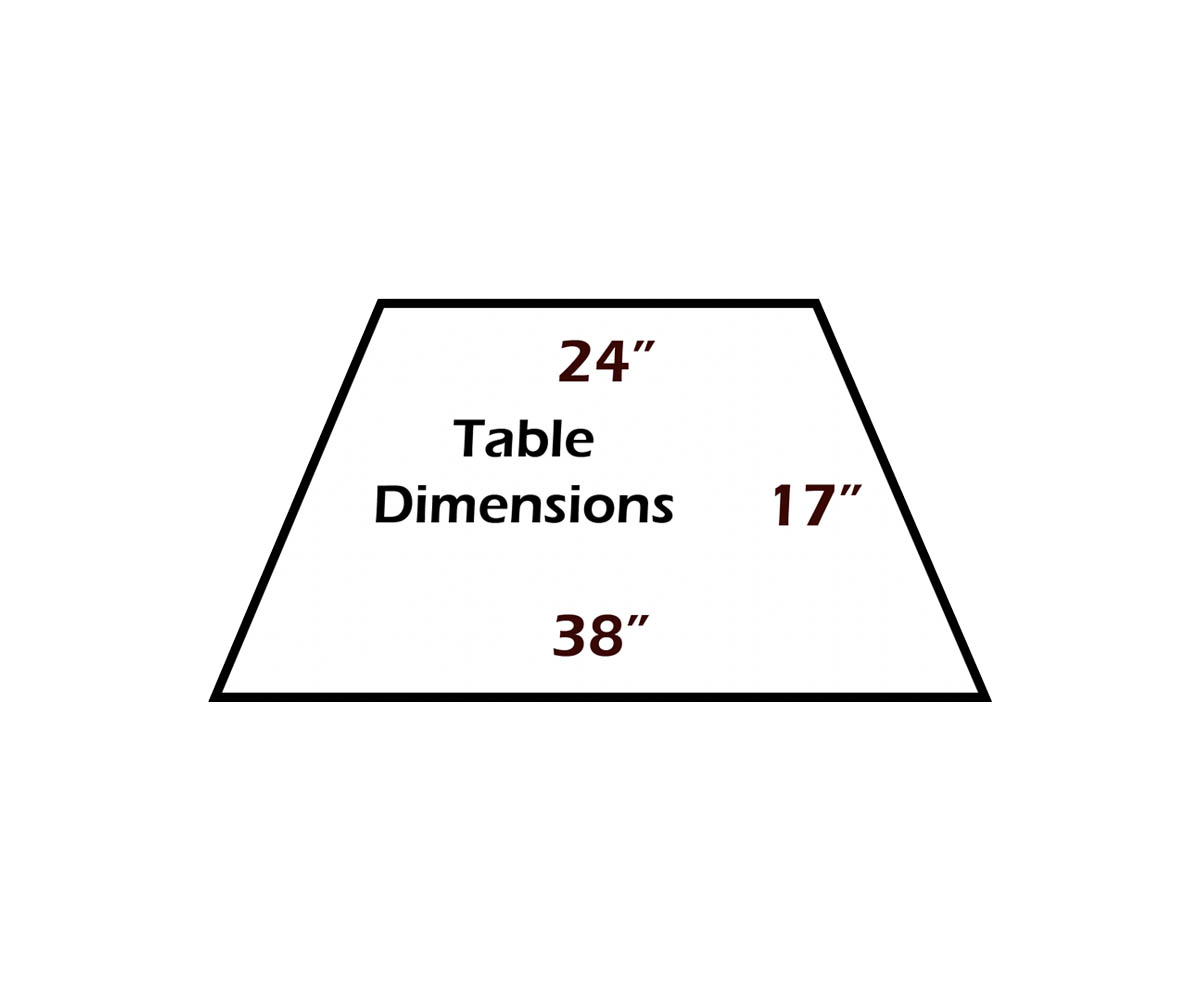 Center Table: 38″W x 17″D