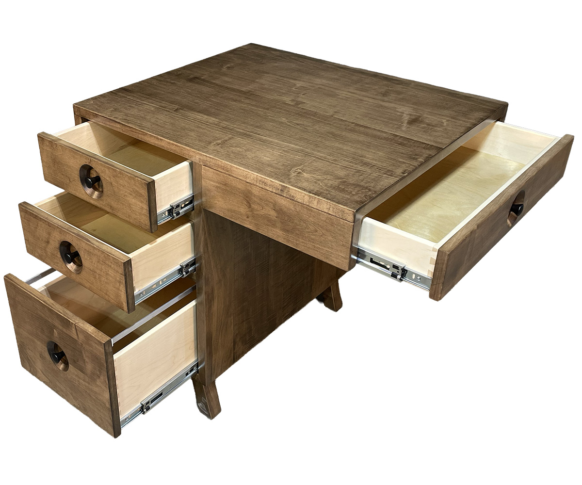 • 12″D pencil drawer on the right
