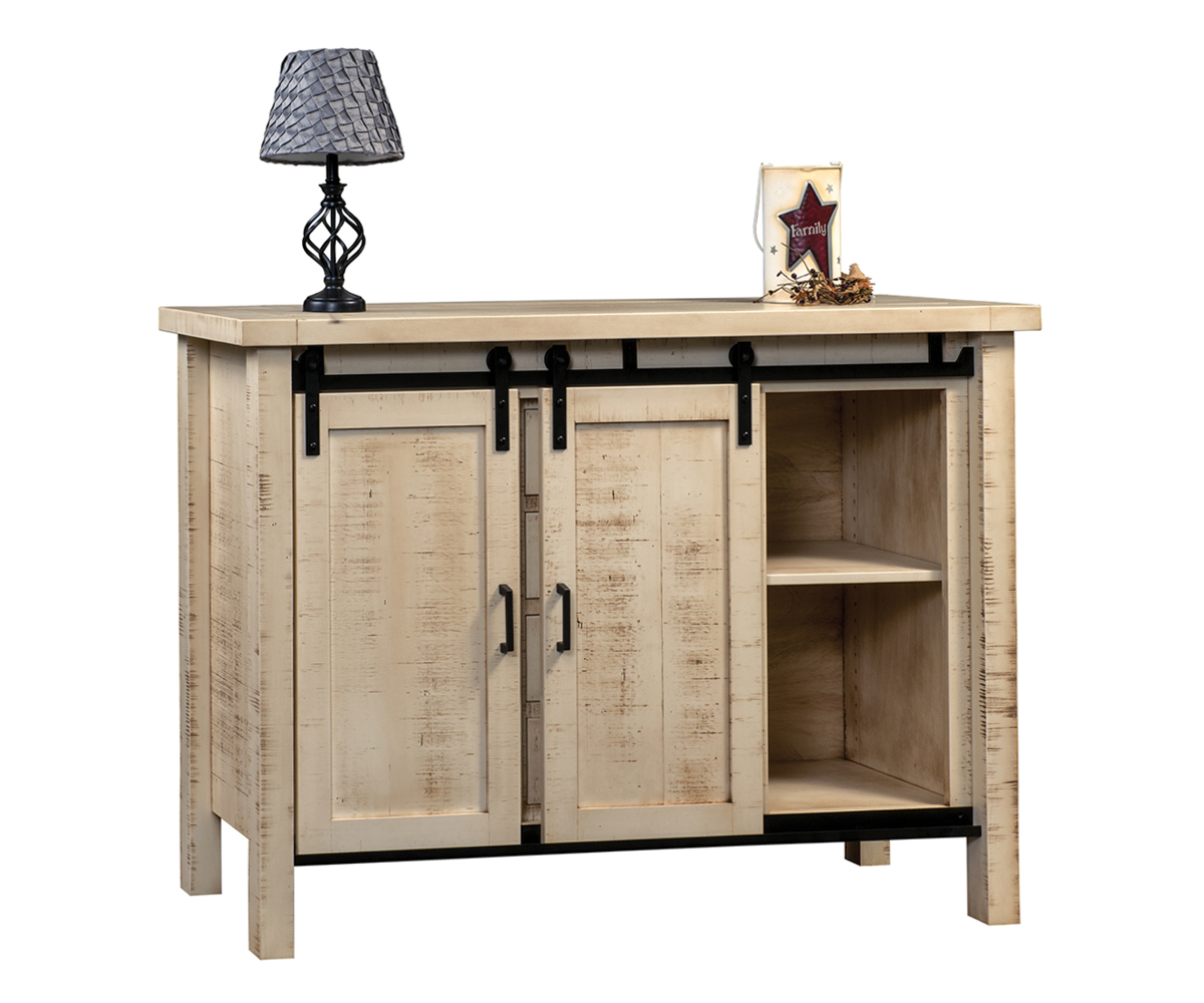 Shown With: Wood: Rough Sawn Wormy Brown Maple Stain: FP-7624 Pearl with FG-9079 Early Wheat Glaze Hardware: 55276-BBR (pull)