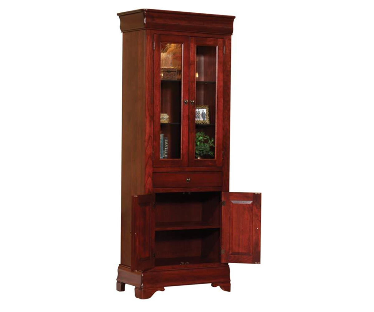 • Two adjustable glass shelves with a plate groove in the hutch top
