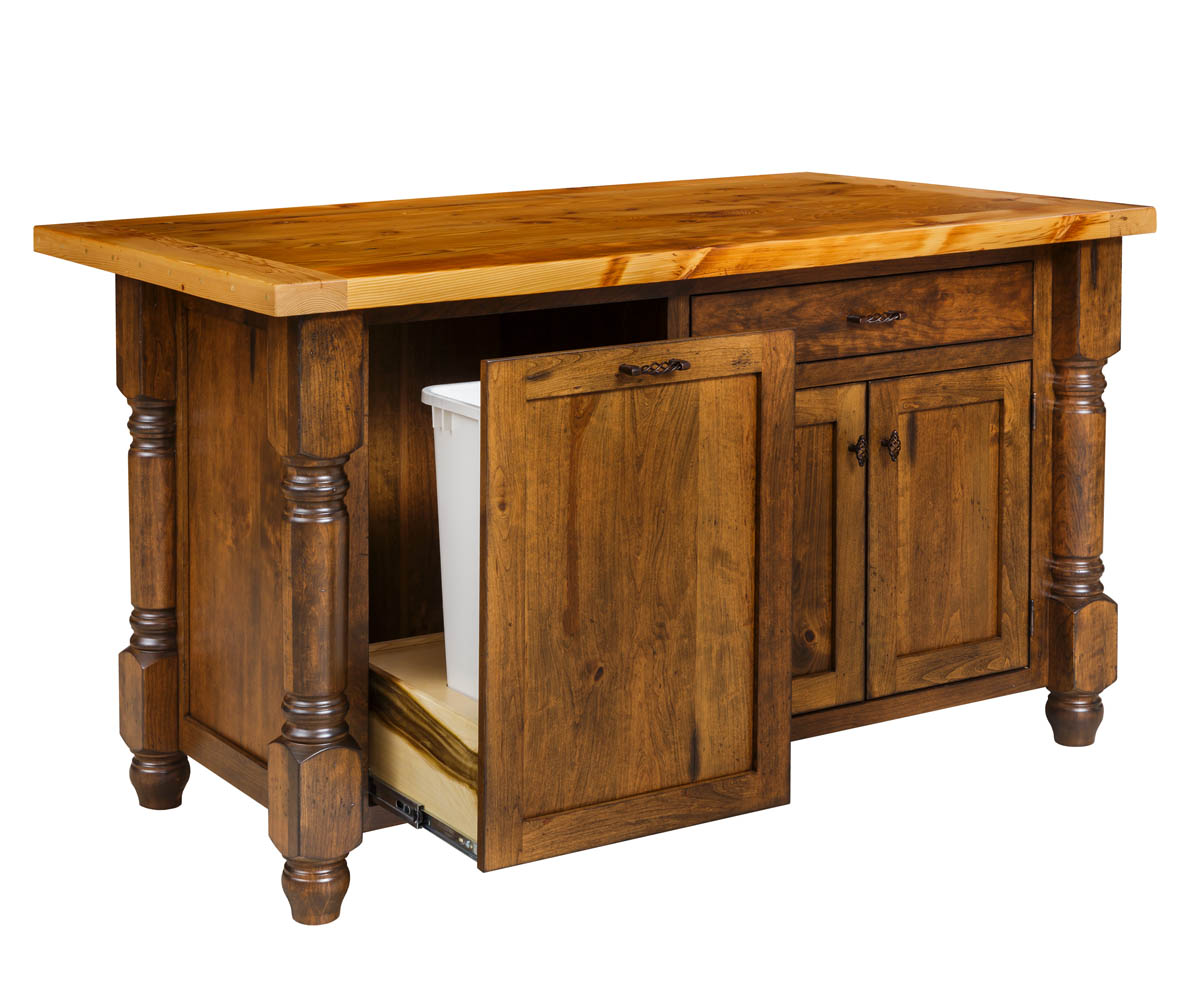 Features: • Trash can pull out • Dovetailed drawer • Full extension drawer slides • One adjustable shelf behind doors