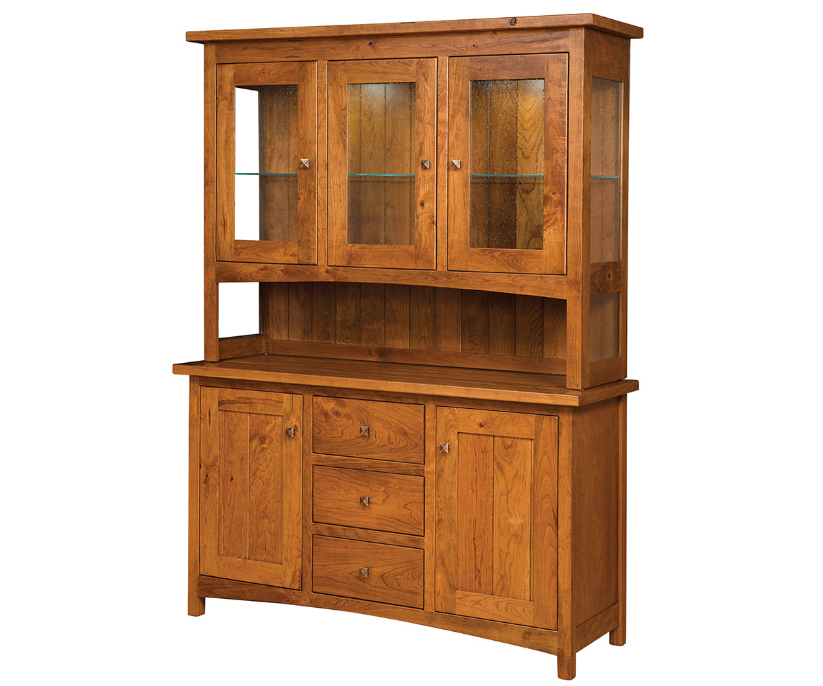 Features: • Shiplap back detail • Seeded glass doors • Lights in the hutch top • One adjustable shelf in the hutch top • Dovetailed drawers with soft close drawer slides • One adjustable shelf behind each door in the base