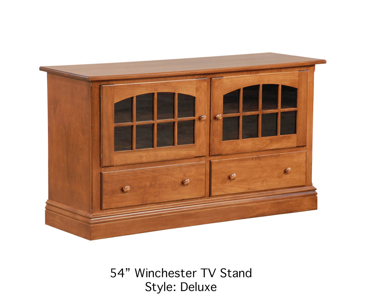 This design is also available in the following sizes: 48″ TV Stand: 48″W x 18″D x 31″H 54″ TV Stand: 54″W x 18″D x 31″H 70″ TV Stand: 70″W x 18″D x 31″H 75″ TV Stand: 75″W x 18″D x 31″H 80″ TV Stand: 80″W x 18″D x 31″H