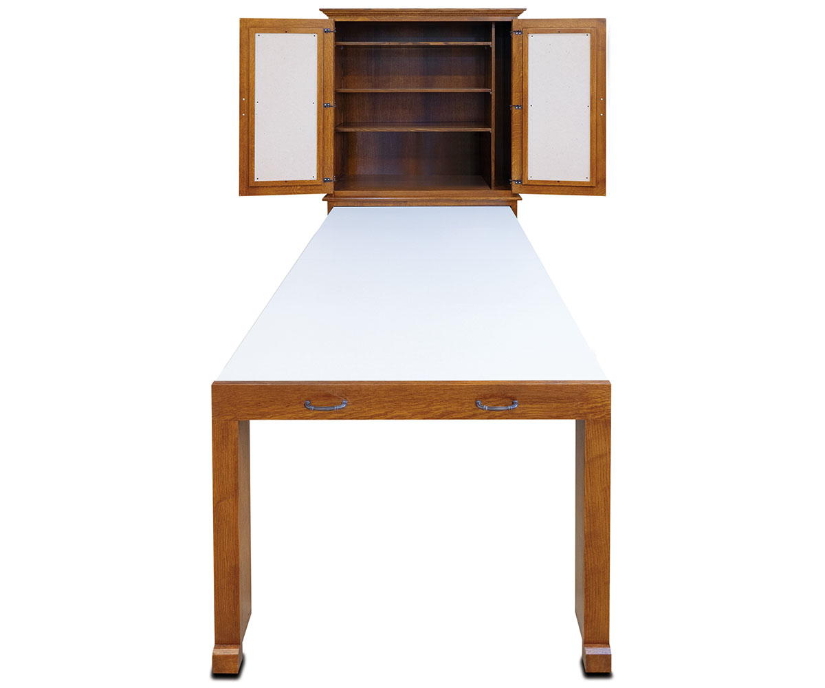 • Leaves for the table store in the top of the cabinet